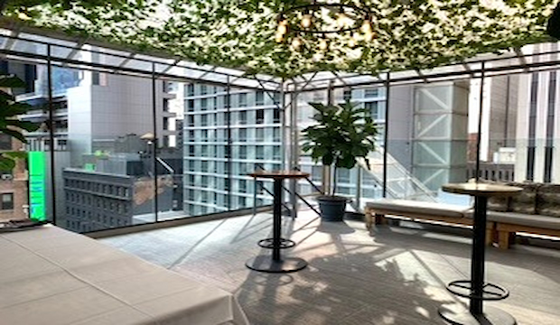 Haven Rooftop and SL Rooftop at the Sanctuary Hotel are made for corporate cocktail parties in the heart of Midtown Manhattan. Both spaces look out over city lights and billboards, giving your event an instant New York backdrop. Haven Rooftop offers a polished lounge setting with flexible layouts for passed bites, stations, and premium open bar packages. Haven Rooftop is ideal for end-of-year mixers, client receptions, and team celebrations. SL Rooftop adds a culinary moment with chef-driven menus and a live-action sushi station that entertains while it serves. Japanese-inspired cocktails pair well with the menu, or we can match your company’s brand with a custom drink.